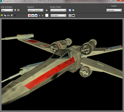 Once i was comfortable with the different techniques regarding creating and applying material to objects i started with my first model the X-Wing.